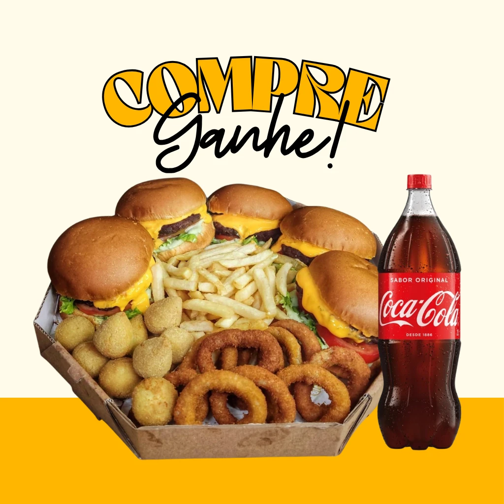 💡 Vantagem: Um verdadeiro banquete! Sai por apenas pouco mais de R$29 por pessoa com hambúrguer, frita recheada e dois petiscos inclusos.
