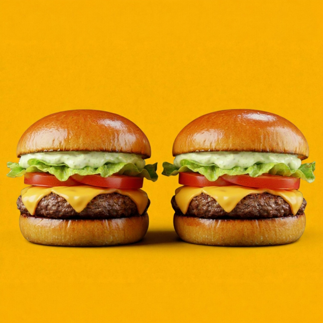 2 hambúrgueres artesanais com opções gratuitas e com upgrades. Uma refeição completa, saborosa e feita na hora. Se quiser deixar a experiência completa, temos opções de batata com cheddar e refrigerante para acompanhar.